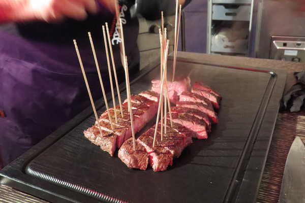 Manch einer schneidet das Steak an der Oberfläche leicht ein um eine zu starke Krümmung während des Grillens zu vermeiden.
